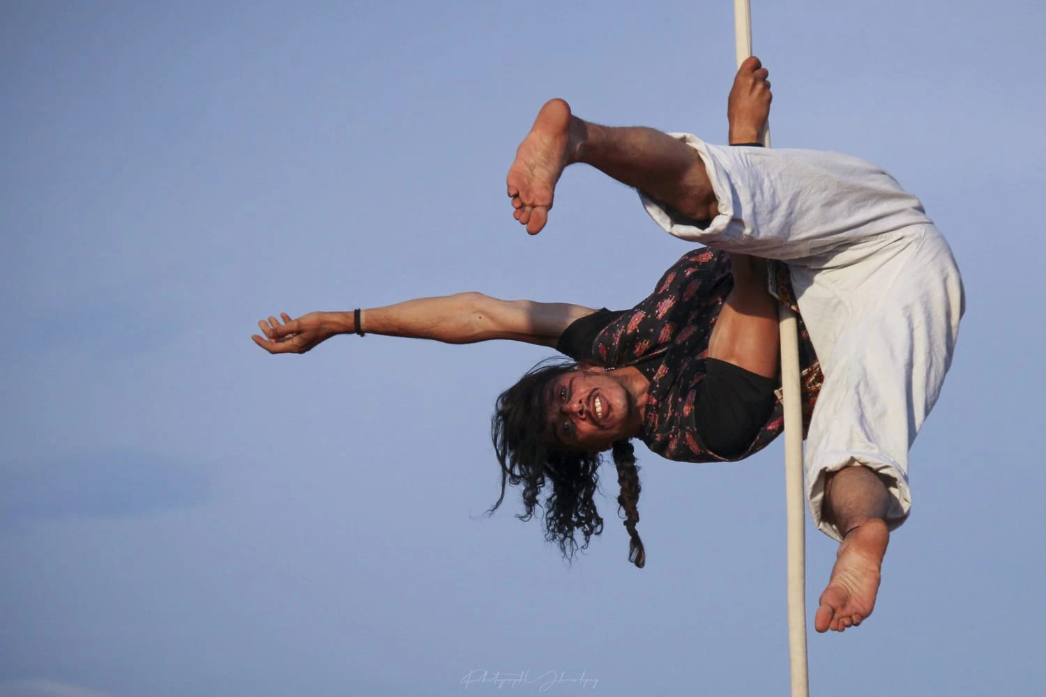 Duna tiene el don de transformar cualquier rincón en un lugar mágico. Creador de galaxias, ingeniero poeta, es capaz de construir con sus manos escenarios que parecen vividos en un sueño. Su presencia escénica no deja indiferente: cuando hay público, interviene con la sabiduría de quien observa el mundo con otros ojos. Y cuando sube a la cuerda, su figura, carisma y energía atrapan. Es un artista total, de los que dejan huella.