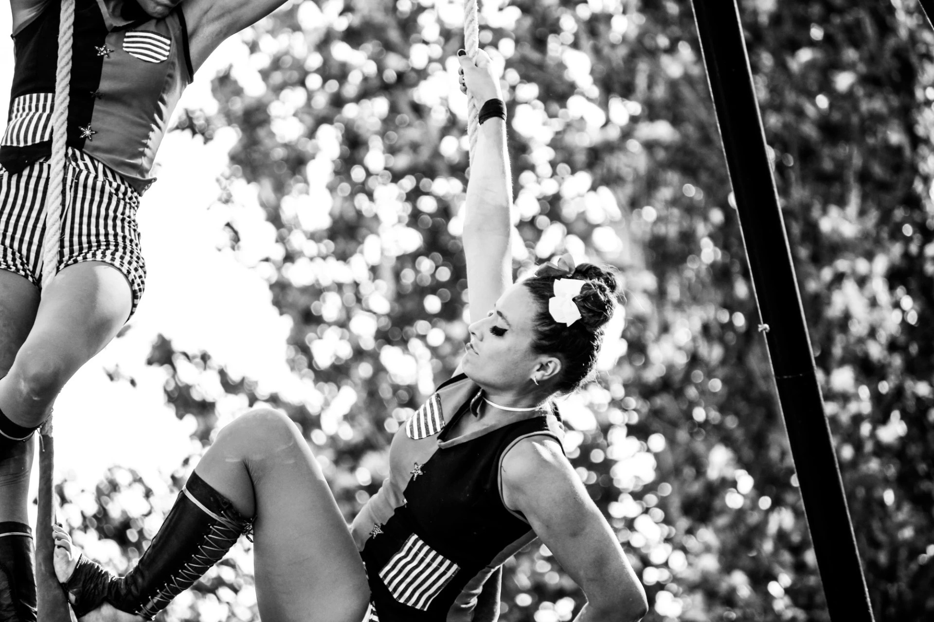 Ylenia es tesón en estado puro. Es capaz de enfrentarse a cualquier reto con la misma energía con la que cuida cada detalle. Como portora, hace volar a Ángela con la confianza de que nunca la va a dejar caer. Como artista, se atreve con la tela, la cuerda o lo que haga falta. Tiene una mente perfeccionista que brota cuando algo no encaja… y un humor que hace que todo fluya. Detrás de esa fortaleza imparable hay también una dulzura inmensa. Ylenia es de esas personas que están, de verdad, en cuerpo y alma.